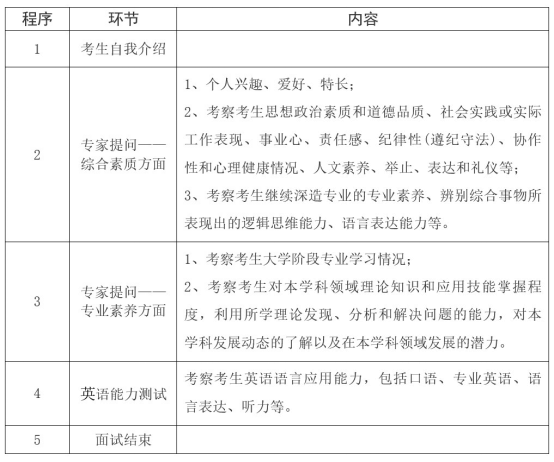 (一)复试形式为线下复试,以综合能力面试方式进行,主要考核考生掌握专业知识的广度、深度,以及运用专业知识分析问题与解决问题的能力,了解考生的研究兴趣、科研能力与英语能力等,满分值100分。复试内容包括以下方面,提问和英语能力测试环节均为随机抽取试题。
