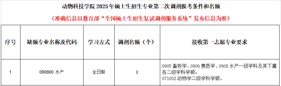 我院水产学硕专业调剂系统第二次开放时间为2025年4月11日14:30,系统关闭时间根据生源情况确定,欢迎全国各地优秀考生调剂到我院继续深造。