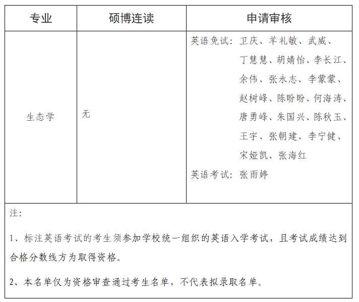 根据安徽农业大学博士生招生规定,经学院资格审查小组审查,并结合报考博导意向,现将资格审查通过考生名单予以公示,详见下表。