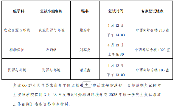 资源与环境学院2025年硕士研究生招考(二次调剂)复试安排及考生复试名单