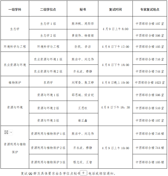 资源与环境学院2026年各学位点(调剂志愿)硕士研究生复试安排