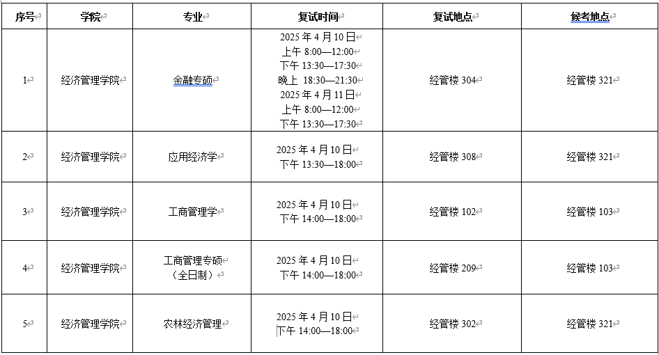 2025年经济管理学院研究生招生调剂志愿复试时间安排表及人员名单