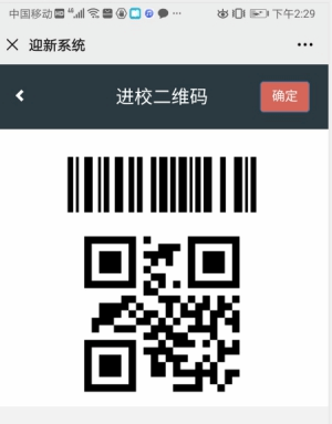 11、点击“进校二维码”。系统生成含有个人信息的二维码,同学们凭二维码入校报到和身份核验。