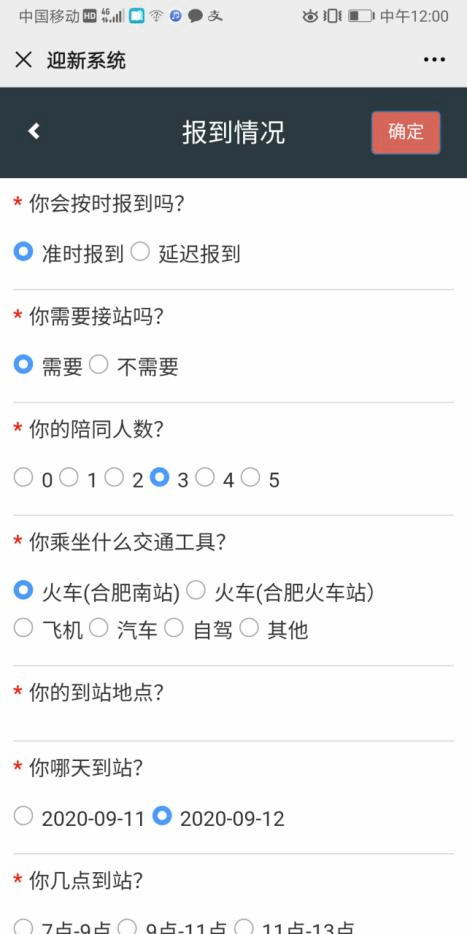 7、点击“报到情况”。采集报到信息,请准确填写是否要接站、到站地点、以便学校统筹安排迎新车辆。